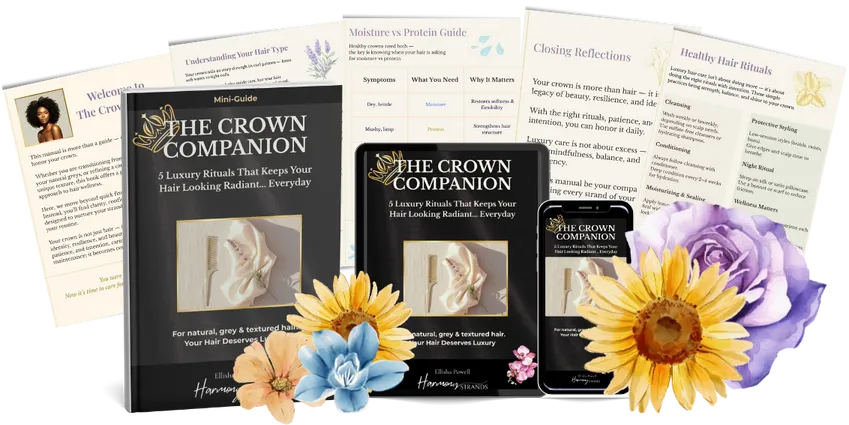 Download your FREE copy of The Crown Companion Mini-Guide and learn the essential secrets to caring for grey, natural, and textured crowns with confidence and luxury.