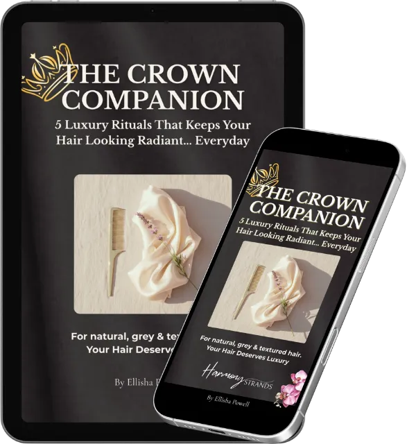 Download your FREE copy of The Crown Companion Mini-Guide and learn the essential secrets to caring for grey, natural, and textured crowns with confidence and luxury.
